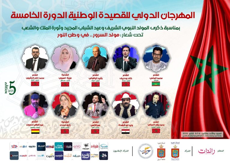 من 6 إلى 8 غشت 2025، تتحول مدينة طنجة إلى عاصمة للكلمة الشعرية والوفاء للذاكرة الوطنية، حيث تحتضن فعاليات الدورة الخامسة لمهرجان القصيدة الوطنية، المنظم من طرف مؤسسة رائدات بشراكة مع مقاطعتي المدينة والسواني والنيابة الجهوية للمندوبية السامية لقدماء المقاومين وأعضاء جيش التحرير. ويقام هذا الحدث الثقافي تحت شعار بليغ: “مولد السرور… في وطن النور”.