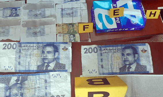 وقد جرى ضبط المشتبه فيه وهو في حالة تلبس، حيث كان يقوم بتصريف ورقتين بنكيتين مزيفتين من فئة 200 درهم بحي مسنانة.