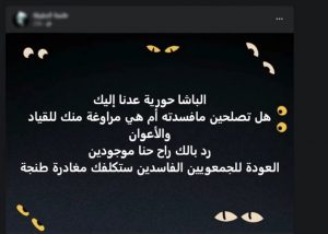 تستعر نار حرب فايسبوكية وعلى تطبيقات التواصل في مدينة طنجة. حرارة هذه الحرب لا تختلف عن أرض الميدان، وكله بسبب القايدة الشهيرة “الباشا حورية”.